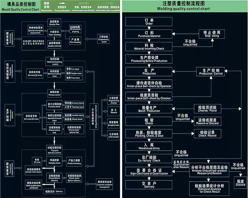 目前,天成達(dá)已與眾多知名供應(yīng)商建立長期合作關(guān)系,包括LKM、YUDO、HUSKY、MISUMI、HASCO、DME,以確保產(chǎn)品加工前的質(zhì)量。天成達(dá)精熟HASCO、DME等模具設(shè)計(jì)標(biāo)準(zhǔn),每一道加工工序和工藝流程均根據(jù)客戶要求制作“標(biāo)準(zhǔn)作業(yè)指導(dǎo)書”、“產(chǎn)品質(zhì)量檢驗(yàn)標(biāo)準(zhǔn)書”,整個生產(chǎn)加工過程均采用IQC、IPQC、FQC、OQC等多個科學(xué)的、嚴(yán)格的檢驗(yàn)程序和質(zhì)量控制點(diǎn),并借助三坐標(biāo)檢測儀、影像測量儀、投影儀等先進(jìn)檢測儀器,在科學(xué)的工藝流程指導(dǎo)下,天成達(dá)興為客戶全方位提供卓越的品質(zhì)保證。